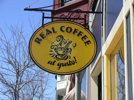 R. Writing or logos that are an integral part of a fabric umbrella, used primarily to provide shade or cover to customers.